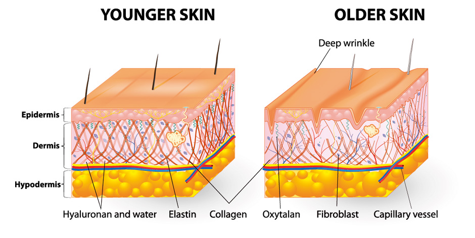 Khi một người già đi, cơ thể của họ sản xuất ít collagen hơn. Sự thiếu hụt collagen này dẫn đến các dấu hiệu lão hóa phổ biến. Nếp nhăn, da chảy xệ mất đi độ đàn hồi và các khớp cứng đều là những dấu hiệu cho thấy cơ thể đang sản xuất ít collagen hơn.