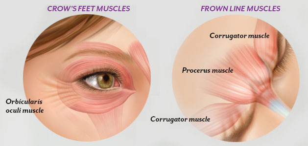 Chất làm đầy da và tiêm Toxin botulinum (Botox) được sử dụng kết hợp để phục hồi thể tích xung quanh mắt và nâng mày (bằng cách thư giãn các cơ ở trán).
