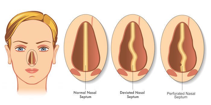Vách ngăn bị lệch xảy ra khi vách ngăn uốn cong, vẹo lệch. Điều này có thể gây khó thở.