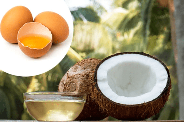 Lòng đỏ trứng gà + dầu dừa giúp làm sạch, dưỡng ẩm, cung cấp dưỡng chất cho da