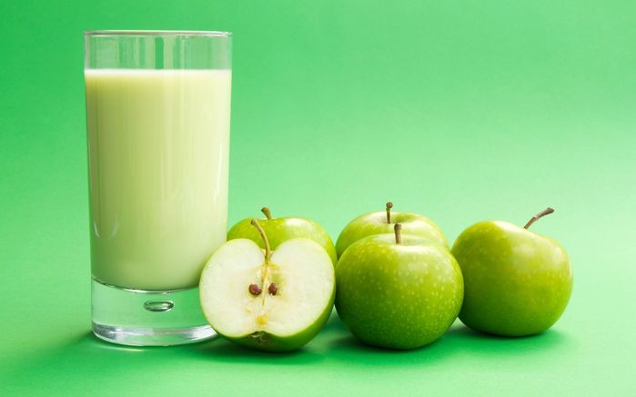 Nguyên liệu: 2 quả táo, 1 lít sữa tươi không đường