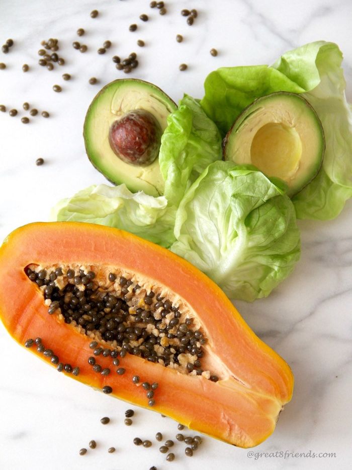 Nguyên liệu: 1/ 2 quả đu đủ, 1 quả bơ