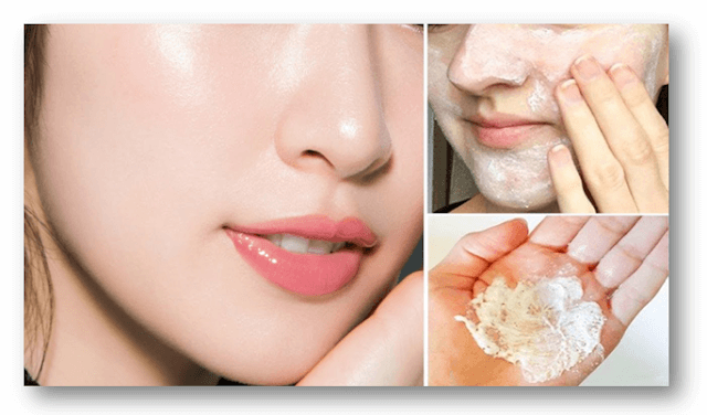 Đầu tiên, rửa mặt bằng sữa rửa mặt dịu nhẹ, không bào mòn và rửa sạch bằng nước. Sau đó, tạo hỗn hợp gồm 3 phần muối nở với 1 phần nước. Chà kỹ theo vòng tròn để làm sạch sâu. Sau đó rửa sạch lại với nước.
