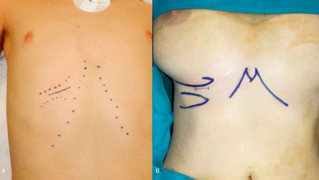 Vị trí vết rạch lấy sụn sườn dưới nếp gấp vú