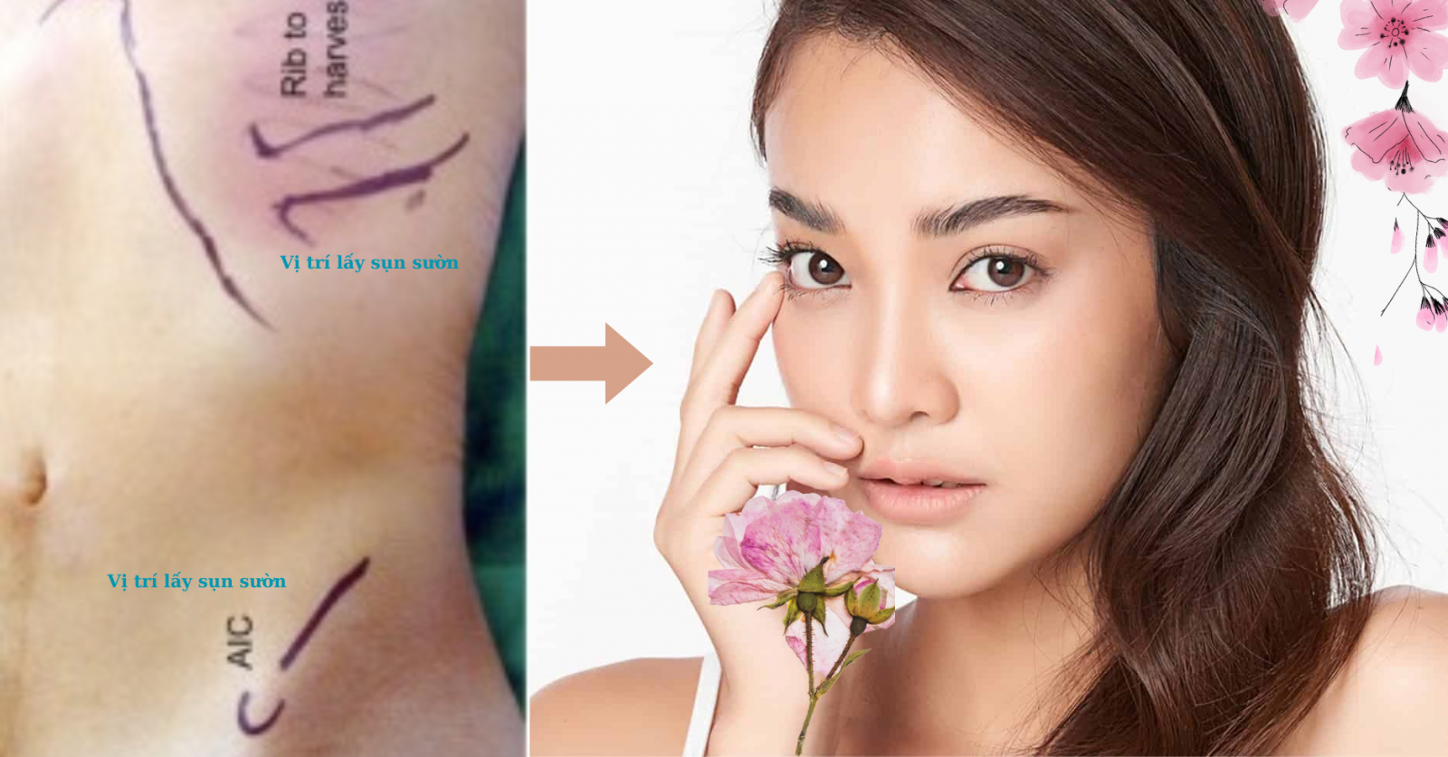 Bệnh nhân nữ trước và sau nâng mũi ghép sụn sườn