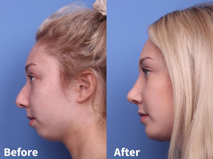 Bệnh nhân trước và sau phẫu thuật cằm yếu, thiêú hụt cằm