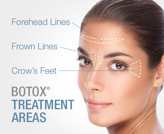 Các khu vực có thể điều trị với Botox