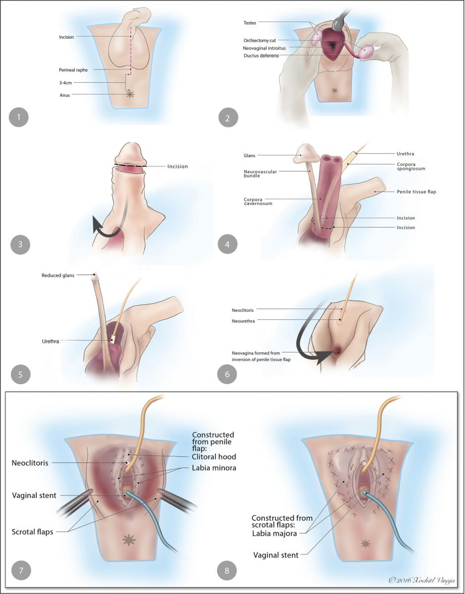 Các bước trong phẫu thuật tái tạo âm đạo bằng kỹ thuật da lộn ngược dương vật