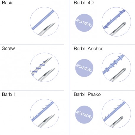 Tùy chọn: Chỉ polydioxanone (PDO), chỉ Silhouette Soft và chỉ mảnh với hình nón có thể hấp thụ hai chiều.