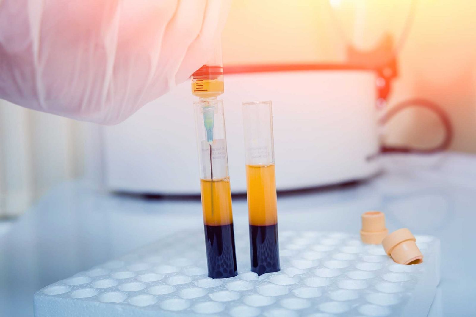 Sau khi lọc ly tâm sẽ thu được huyết tương giàu tiểu cầu phần màu vàng phía trên