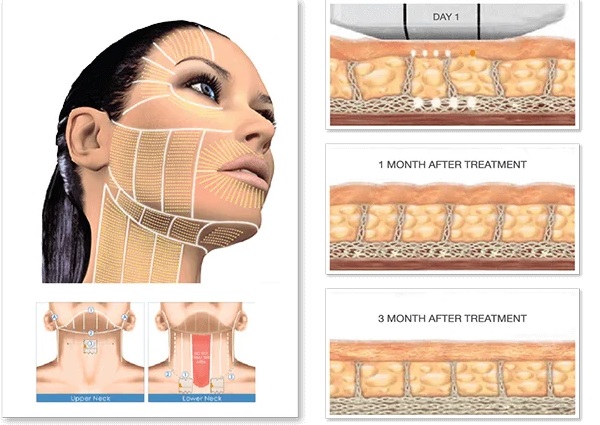 Nếu không xác định được các lớp da cần điều trị, kỹ thuật viên sẽ không biết liệu họ có đang điều trị đúng lớp hạ bì, xương hay mỡ hay không. Đánh vào xương sẽ gây đau đáng kể và xử lý chất béo sẽ làm mất chất béo, dẫn đến giảm thể tích. Và Ultherapy sử dụng công nghệ Vi tập trung thay vì Siêu âm tập trung cường độ cao (HiFu), điều này có nghĩa là nó nhắm mục tiêu vào một khu vực cụ thể, chính xác, tạo ra kết quả tốt hơn, đúng mục tiêu hơn. MFU nhắm vào các lớp của lớp hạ bì, tạo ra các vết thương siêu nhỏ. Khi bạn tạo ra những vết thương nhỏ bên dưới da, sản xuất collagen và elastin sẽ được kích thích, dẫn đến nâng cơ và tái tạo da.