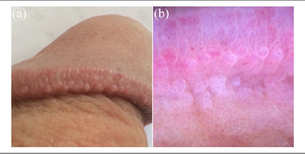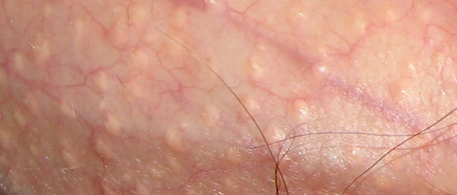 Còn gọi là sẩn sinh dục lành tính, những nốt mụn nhỏ xung quanh vành của đầu dương vật. Chúng có thể có màu trắng, vàng hoặc màu da và không kèm theo đau hoặc ngứa. Chúng không lây nhiễm hoặc liên quan đến bất kỳ vấn đề lâu dài nào.