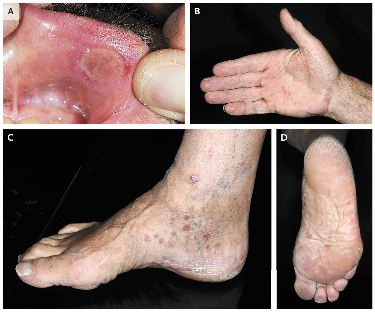 Bệnh giang mai thứ phát thường xuất hiện dưới dạng một nốt ban sần sùi, nhô cao có thể kèm theo một số khó chịu và cũng có thể bị nhầm với mụn cóc sinh dục. Chẩn đoán thường được thực hiện bằng xét nghiệm máu. Điều trị bằng thuốc kháng sinh.